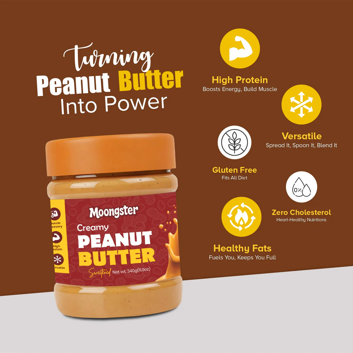 Gold Peanut Butter 340g is made from 100% natural roasted peanuts, giving you a rich, creamy texture and real peanut taste without any unnecessary additives.